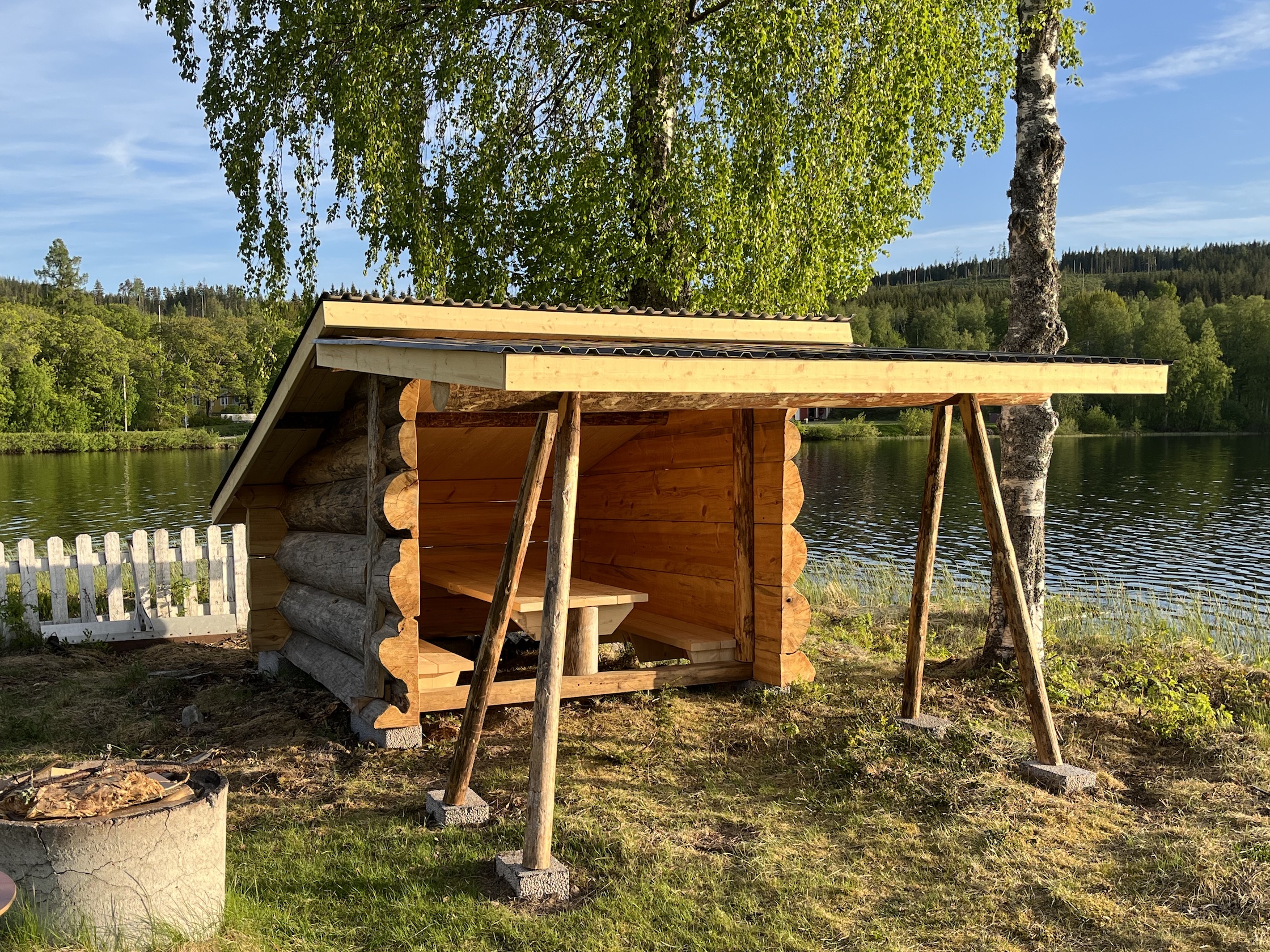 Vi har byggt ett vindskydd vid badet med bidrag från Enviksbergets vindpeng.